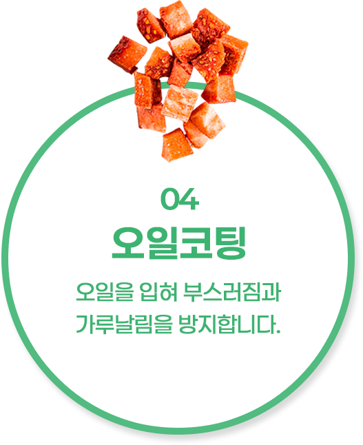 동결건조+오일코팅 공법으로 원재료 그대로의